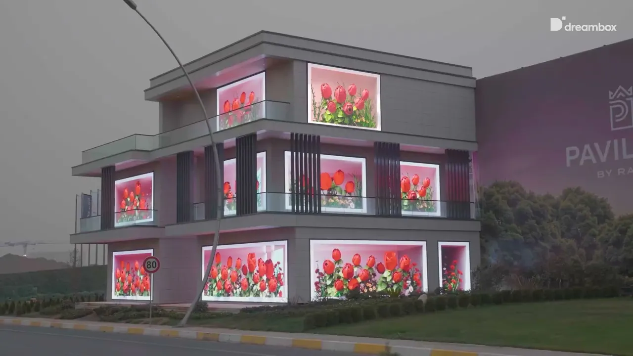 We built a 1:1 scale model of one of the villas from the Rams Pavilion project and transformed it into an immersive outdoor LED experience. The villa itself became a living stage, showcasing the lifestyle and spirit of the development through dynamic visuals, light, and storytelling.